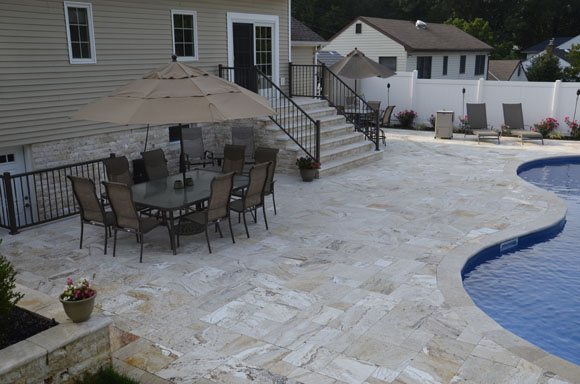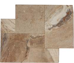 The Leonardo paver cannot be described without immediately shedding light on the name it bears and where it comes from. Travertine King’s Leonardo paver can easily be considered a work of art or masterpiece, itself. This stone, with a classic color base, is quarried directly from the earth and its appearance is absolute astounding. The Leonardo comes in an impressive assortment of tones, with just as many colors in its veins. The veins, which may be found in black, charcoal, white, chocolate, create some of the most unique patterns and designs. Hints of amber and brick-red tones can also be found throughout some of the pieces, adding the final touches to what appears to be a naturally made artistic masterpiece.