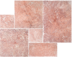 Our Shirley Temple travertine pavers are by far the most unique of all. Shirley Temple comes in a broad spectrum of different shades, with incredible patterns. On the more subtle and reserved end of the spectrum, the stone is mostly beige in color; however the pavers are accented with natural spider veins of reds, pinks, and crystals. On the brightest and most end of the spectrum, Shirley Temple are available in beautiful shades of light, pale, pinks, to intense roses.