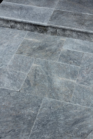 Tiger Ice Bluestone is a natural marble pavers that consist of light and dark blue tones with the canvas pattern that resembles a tigers coat.
